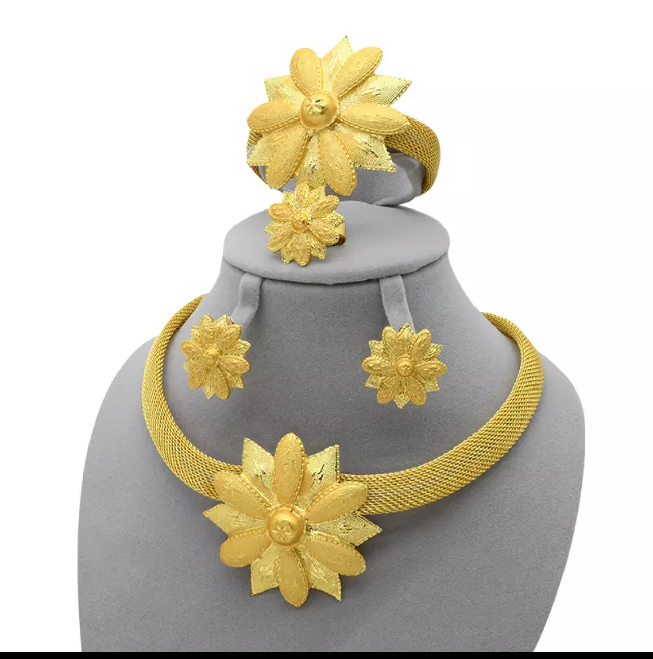 18k Gold Plated Italian Jewelry Set For Wedding, Anniversary, Jewelry Set Gift, Necklaces Bracelets Earing Sets