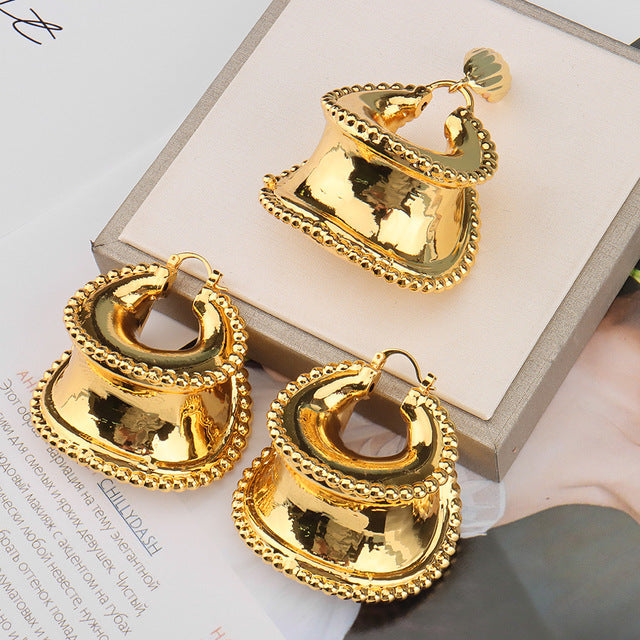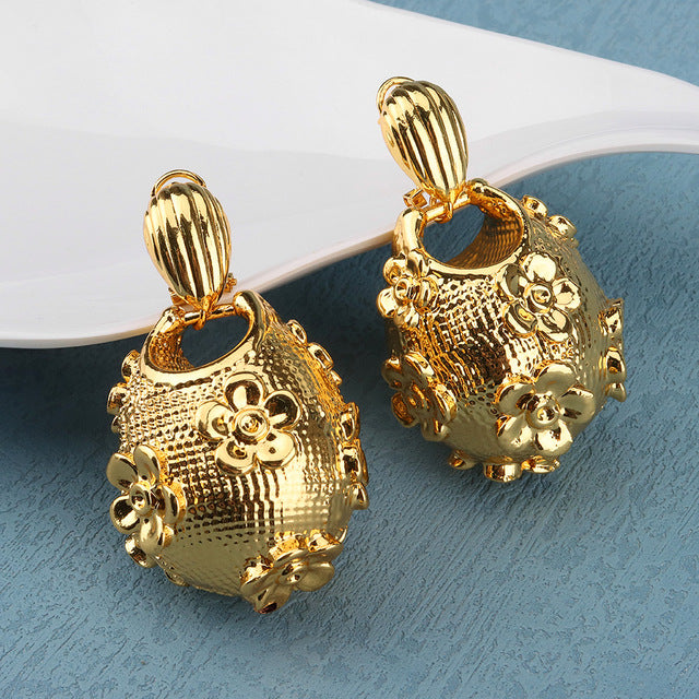 Africa Ear Jewelry for Women Fashion Dubai Wedding Earrings Pendant for Bridal Design Gold Plated Nigerian Accessories