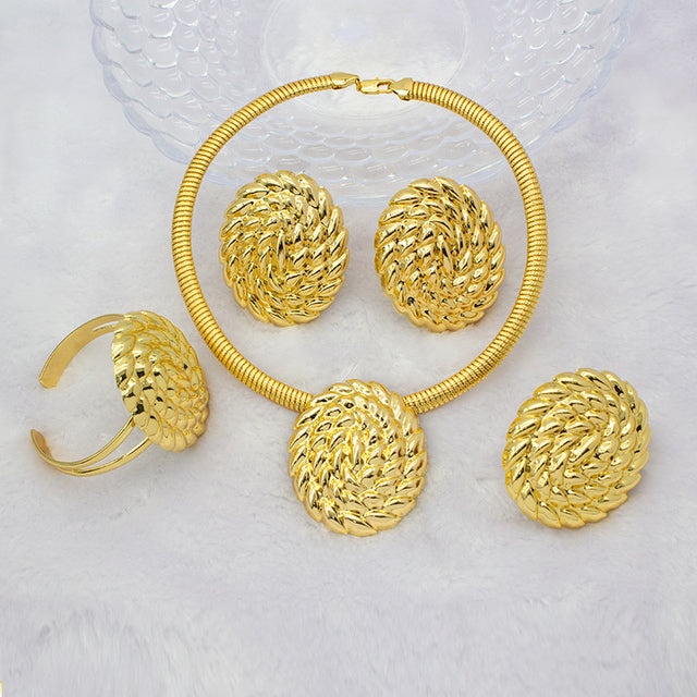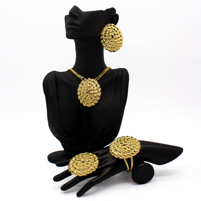 Jewelry Set Women Fashion Oval Shape Wheatears African Dubai Gold Color Big Earrings Ring Bracelet Necklace for Bridal Wedding