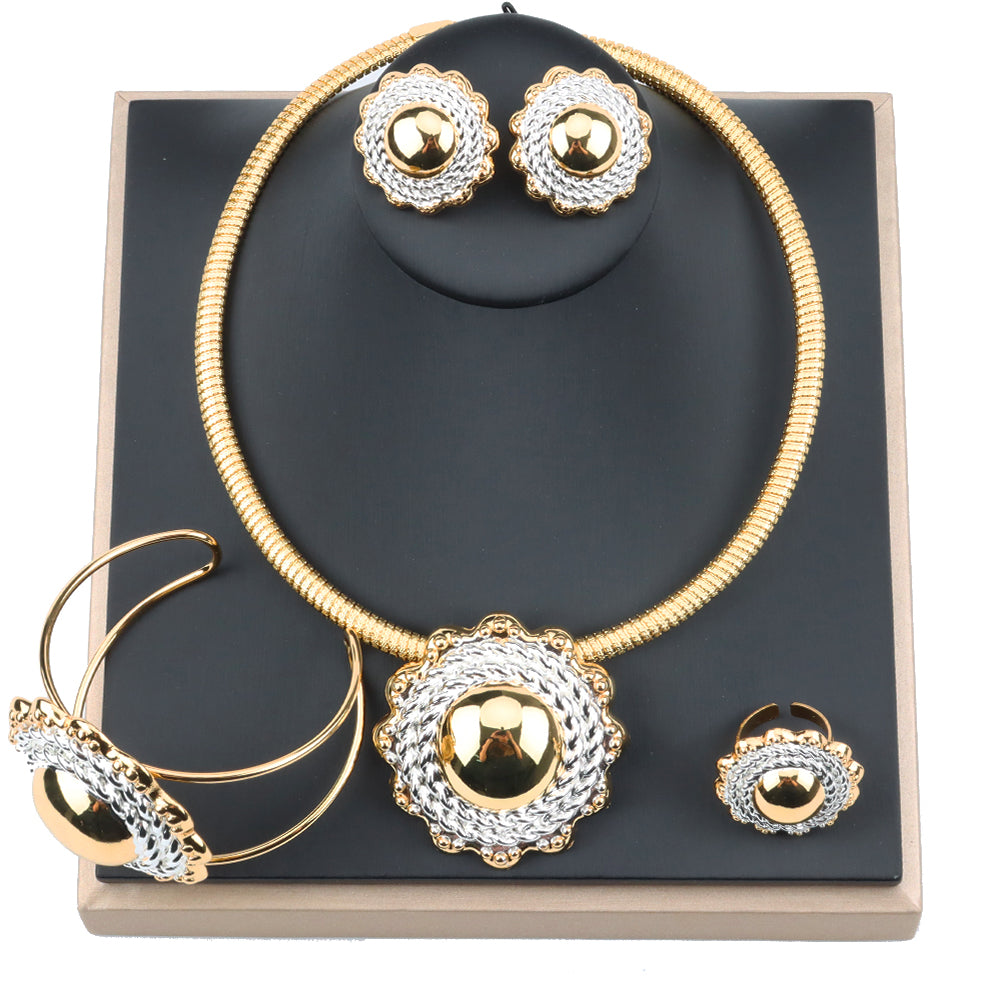 Jewelry Sets For Women Necklace Earrings Bracelet Ring Round Bead Pendant Dubai Gold Color Jewelry For Wedding Party 2022 Trend