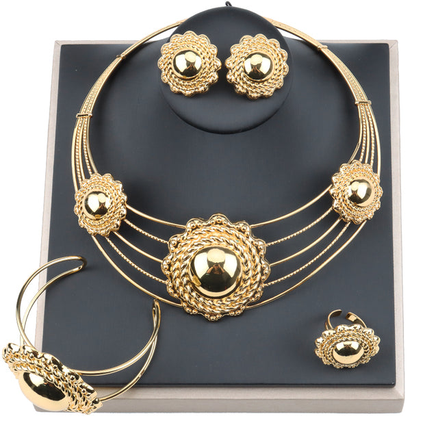 • Load image into Gallery viewer, Jewelry Sets For Women Necklace Earrings Bracelet Ring Round Bead Pendant Dubai Gold Color Jewelry For Wedding Party 2022 Trend
