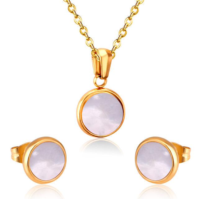 LUXUKISSKIDS Opal Shell Dubai Wedding Bridal Christmas Jewelry Sets Pendant Necklace Earring For Women Gold Indian Jewellery Set