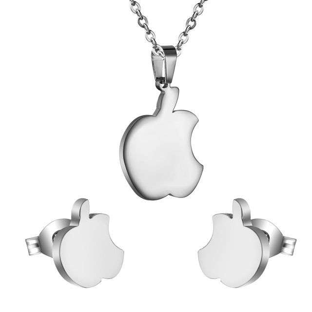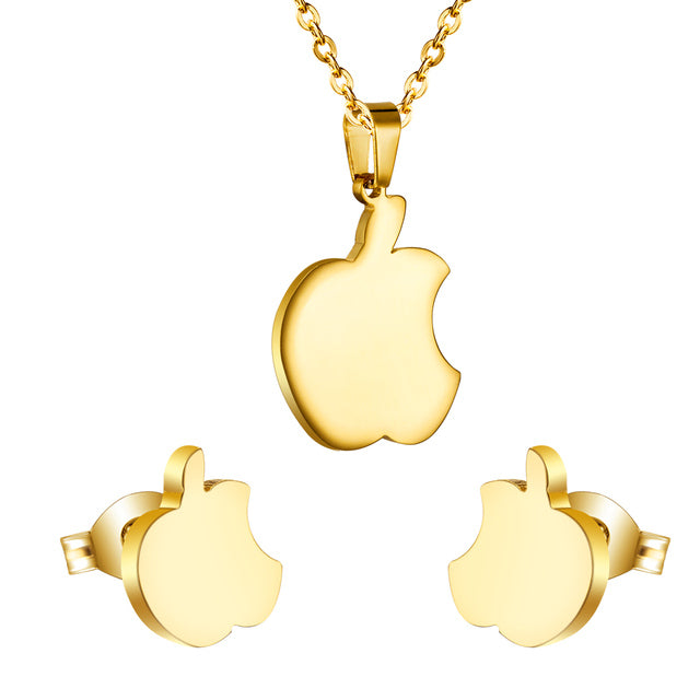 LUXUKISSKIDS Stainless Steel Dubai Men Gold Jewelry Sets Apple Pendant Necklace Earrings African Indian Jewelrysets For Women