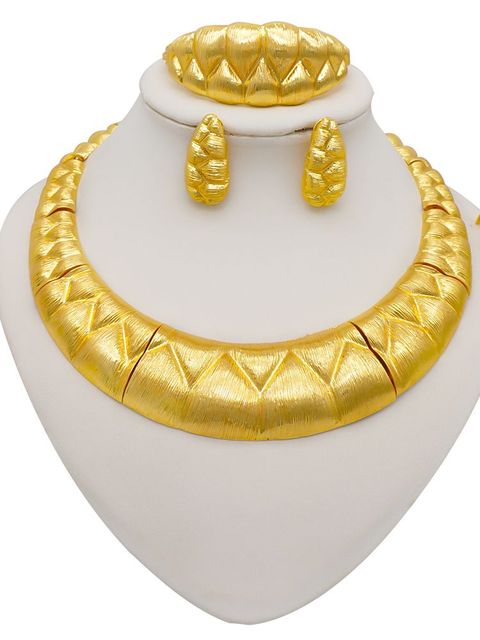Wedding Jewelry Set For Women Dubai Gold Bridal Necklace Earrings Ring Bracelet For Party Jewelry Gift